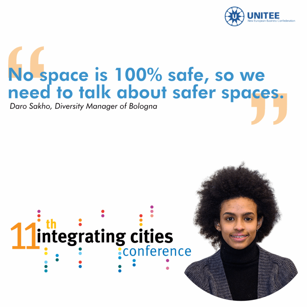 On the other hand, Daro Sakho, Diversity Manager of Bologna, argued that “no space is 100% safe, so we need to talk about safer spaces for now.” Ari Alatossava, Mayor of Oulu, Finland, argued that “the whole city should be safe, not just one part. (…) If we can trust others, we can create safe spaces”. Oulu is one of the 8 cities that partnered with UNITES. When Alatossava wanted to reach out to stay-at-home migrant mothers, he contacted them directly through the schools and asked them what would help them to integrate into the city. “They asked for swimming lessons for their children, so that is what we offered.”