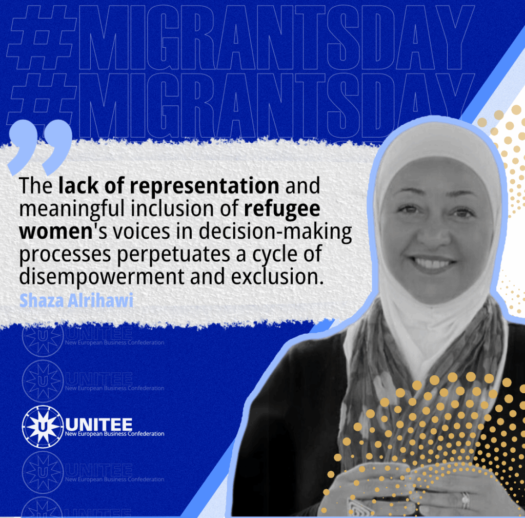 Shaza Alrihawi\’s career started with the UNHCR, the UN Refugee Agency in Syria, where she handled cases of sexual and gender-based violence. Since 2017, she has been a research associate at the LIfBi – Leibniz Institute for Educational Trajectories (LIfBi) in Germany. Shaza co-founded several organizations and is dedicated to promoting the participation rights of refugees. She represents various global and regional refugee initiatives, contributes to numerous reports, and has been a prominent panellist at renown platforms like the Refugee Studies Centre, University of Oxford. When asked about the biggest obstacles for refugee women to participate in European democratic spaces, Shaza said: